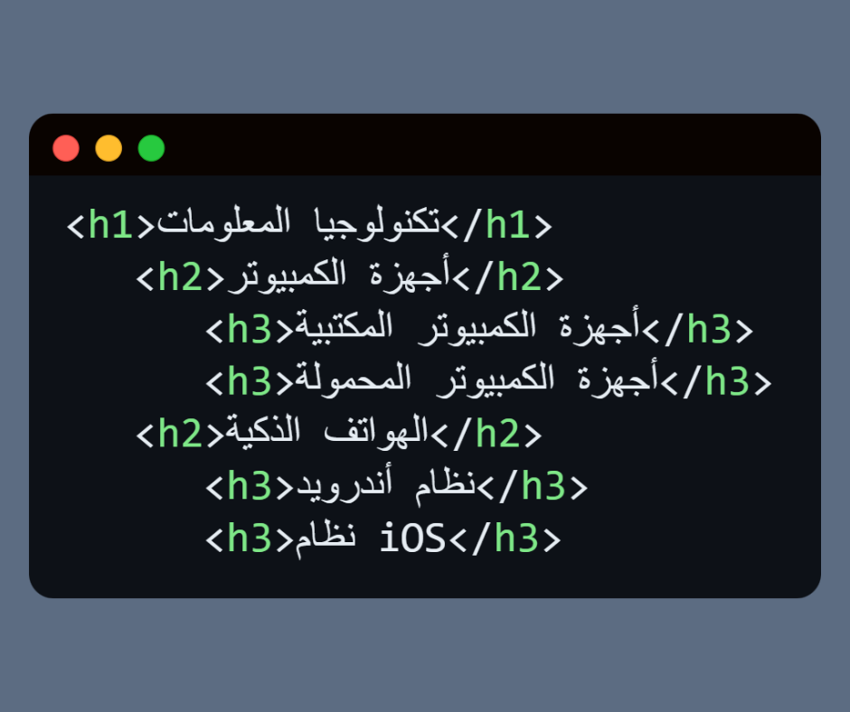 • باقي العناوين لتنظيم المحتوى بشكل هرمي.