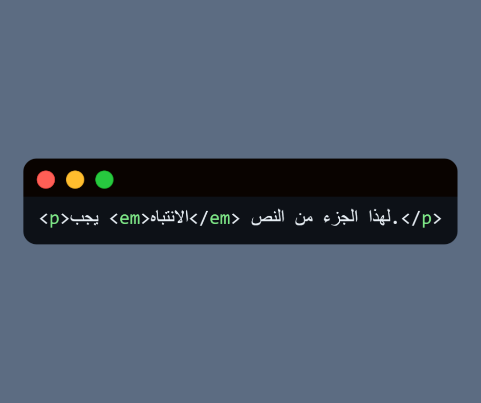 • <em> = نص مائل + له معنى (تأكيد أو إبراز).