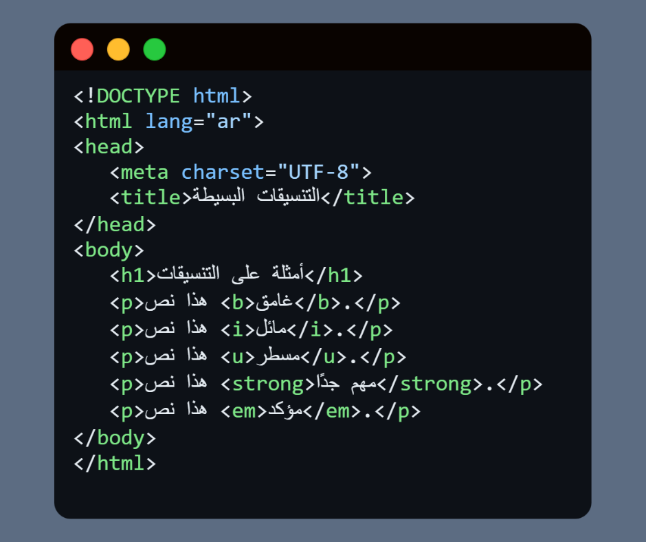 • <strong> و <em> = تنسيق + معنى دلالي (مهم لمحركات البحث ولقارئات الشاشة).