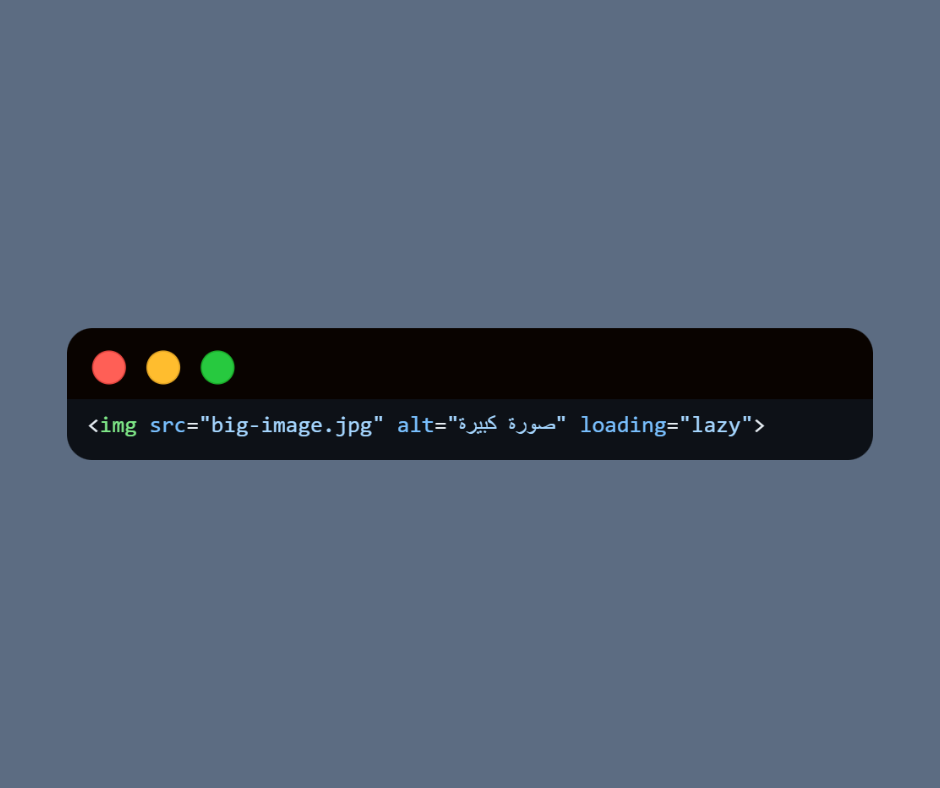 • loading=”lazy” → تحميل الصورة عند ظهورها في الشاشة فقط (يوفر سرعة):