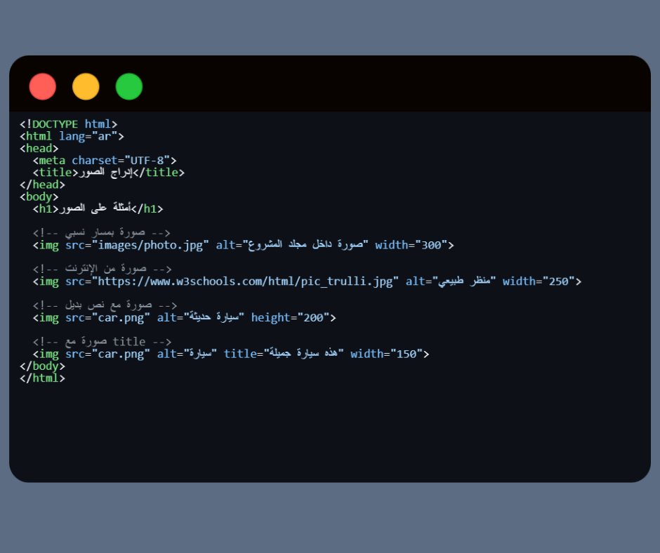 • نص بديل يظهر إذا فشل تحميل الصورة (مثلًا الرابط خطأ).