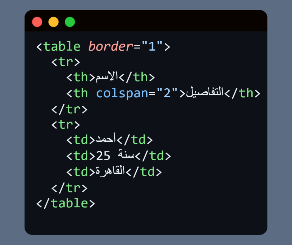 • colspan → دمج أعمدة في خلية واحدة.