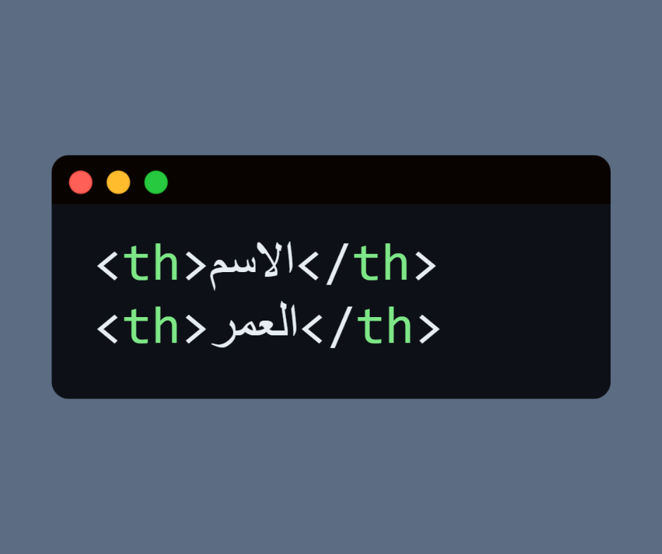 • <th> → Table Header = خلية عنوان (رأس العمود).