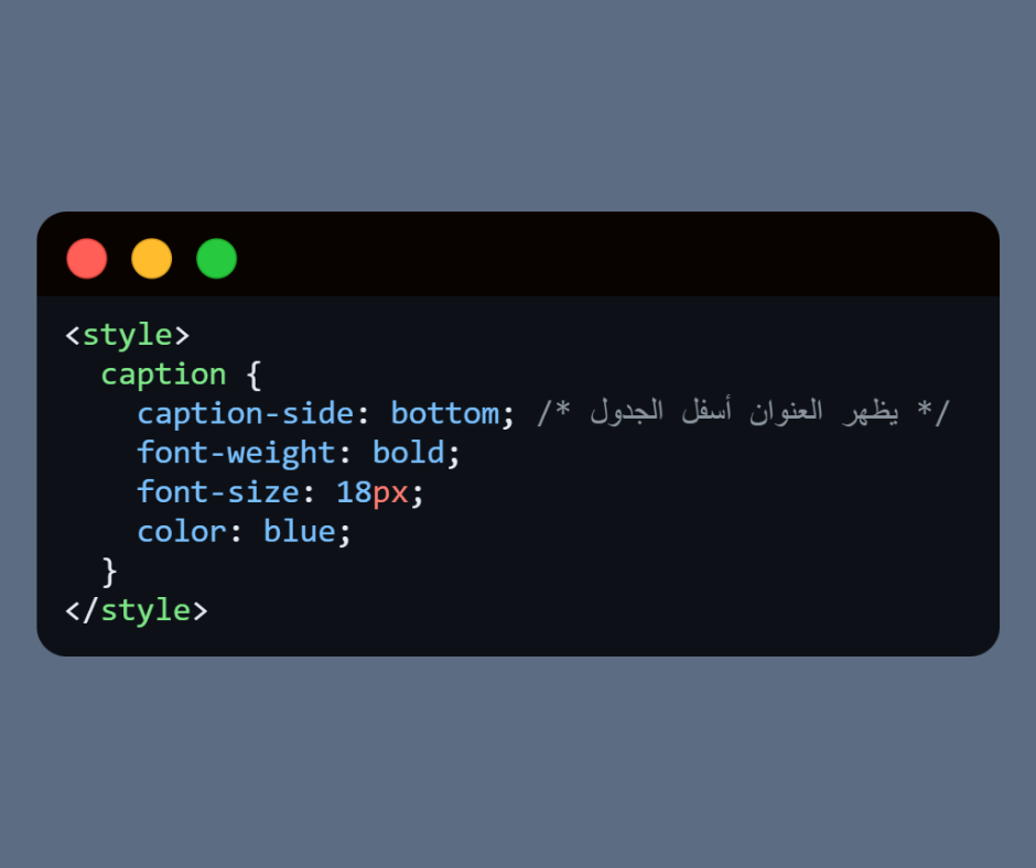🔹 مكان وسم <caption>