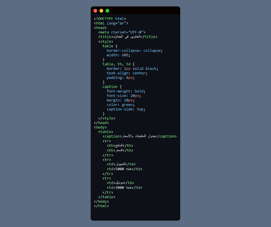 📌 وسم <caption> في HTML