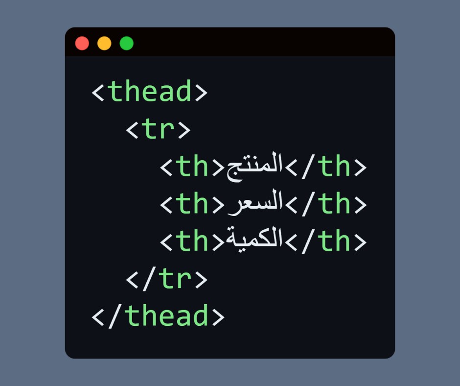 <thead> → رأس الجدول (العناوين).