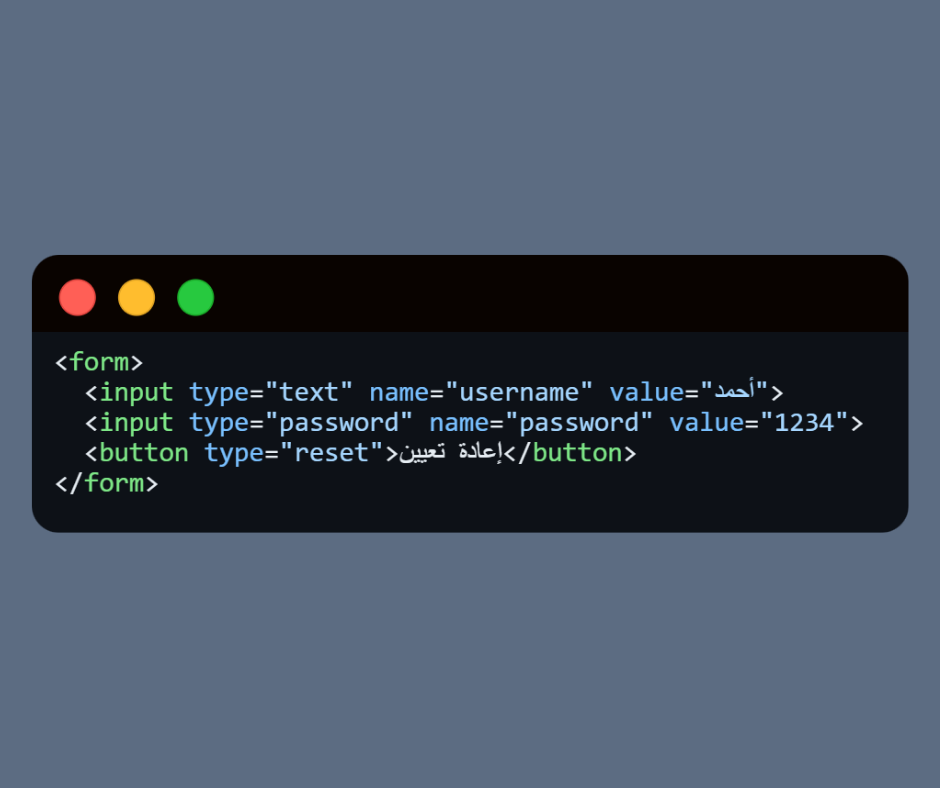 type=”reset” → لإعادة الحقول إلى قيمها الأصلية.