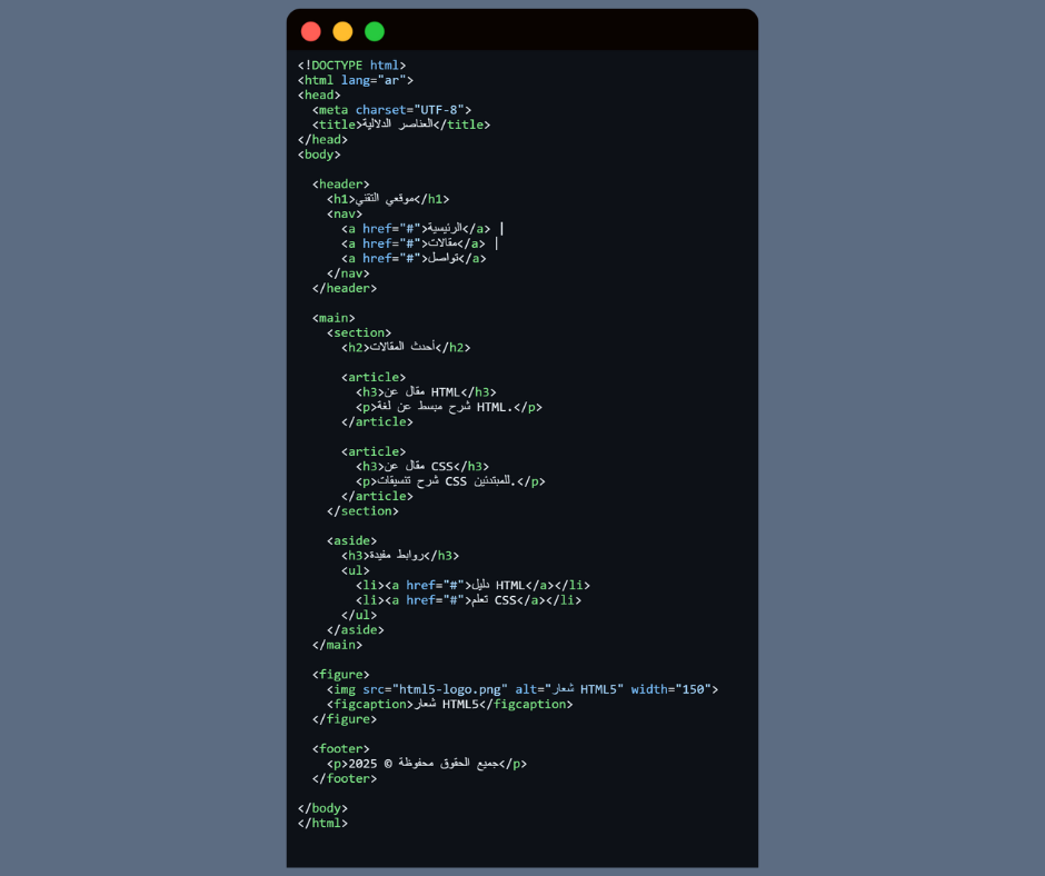 أمثلة: <header>, <footer>, <article>, <nav> … إلخ.
