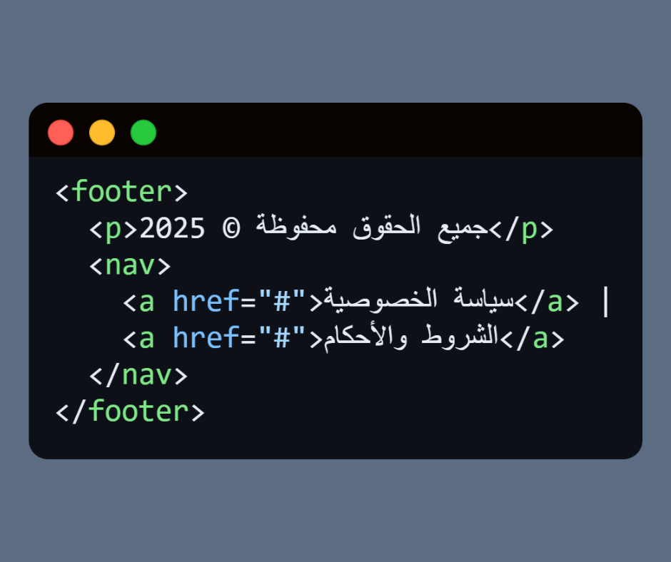 غالبًا يحتوي على: حقوق النشر، روابط التواصل، أو معلومات إضافية.