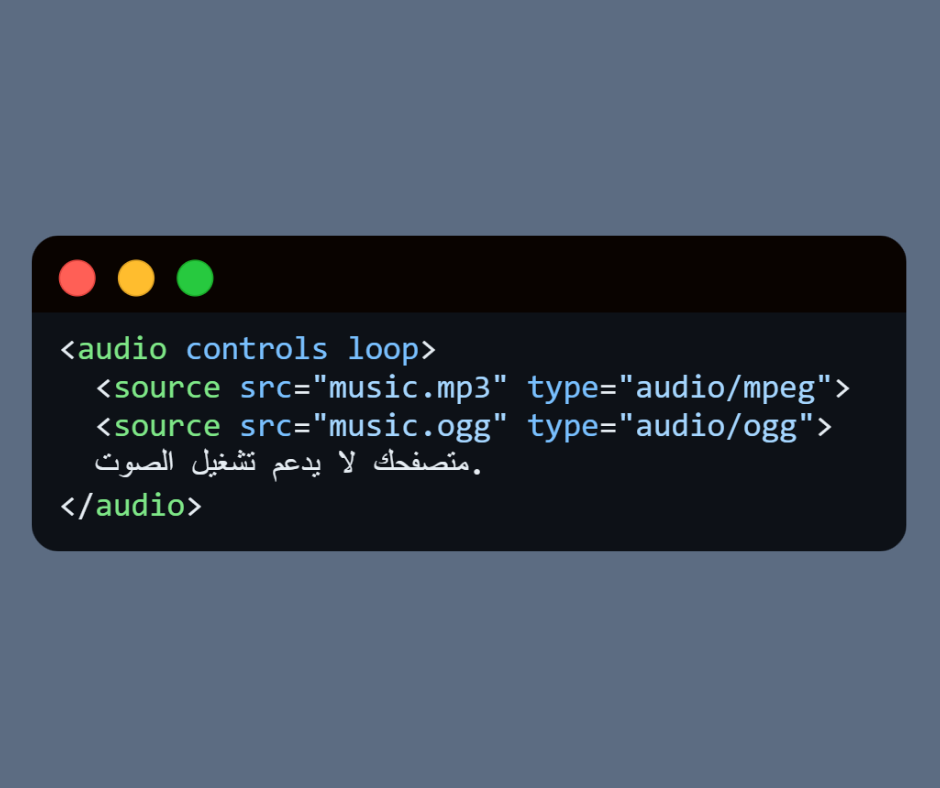 3. autoplay → تشغيل الصوت تلقائيًا (لكن المتصفحات غالبًا تمنع التشغيل التلقائي إلا مع الصوت المكتوم).