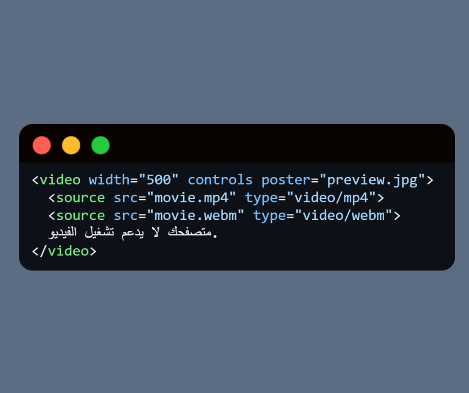 7. poster → صورة تظهر قبل تشغيل الفيديو (صورة معاينة).