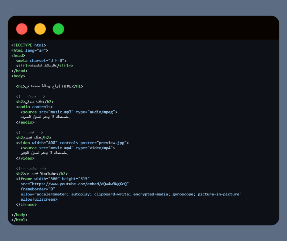 🔹 مثال عملي كامل على الوسائط المتعددة