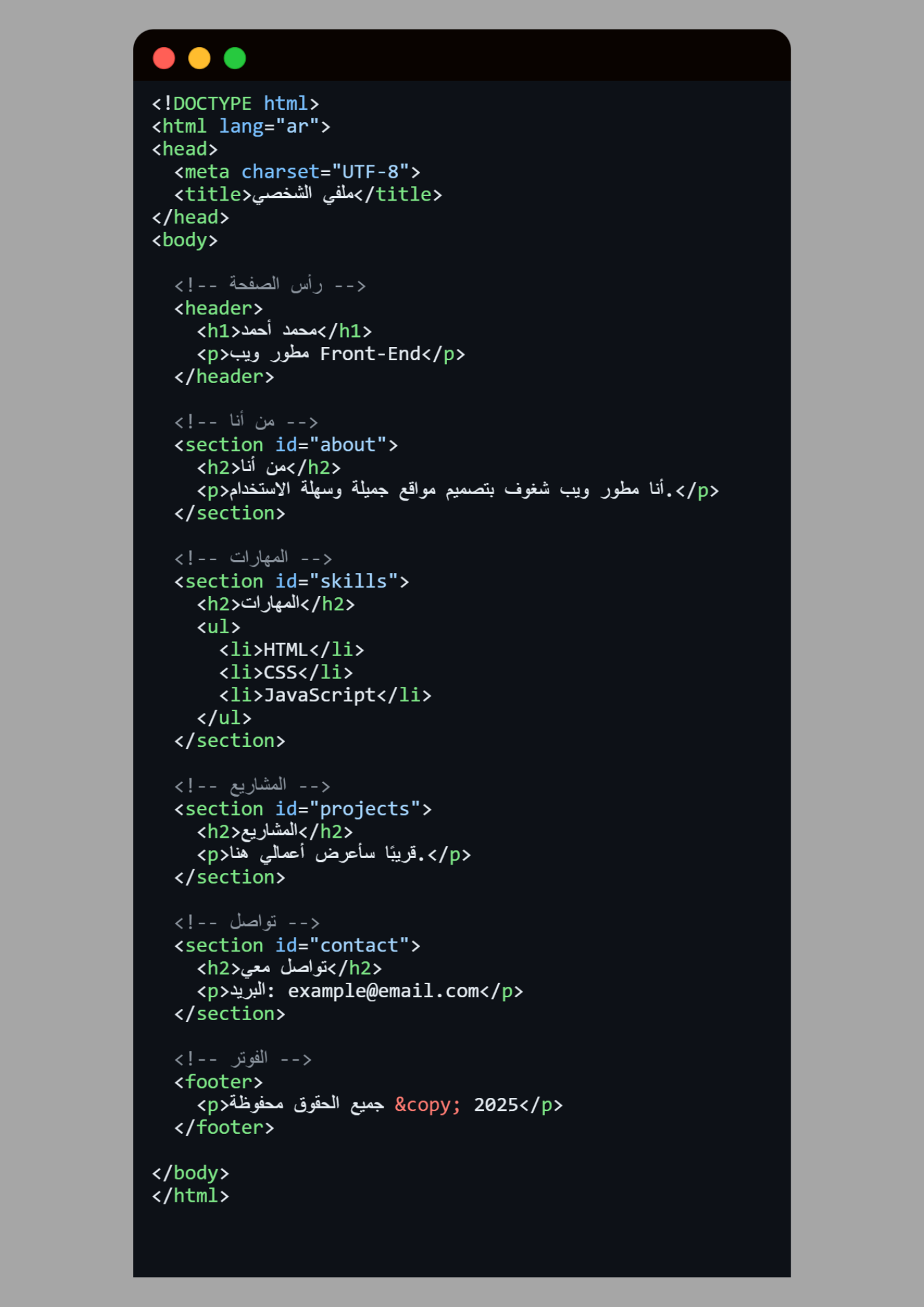 الـ Portfolio هو موقع صغير تعرف فيه بنفسك، مهاراتك، وأعمالك.