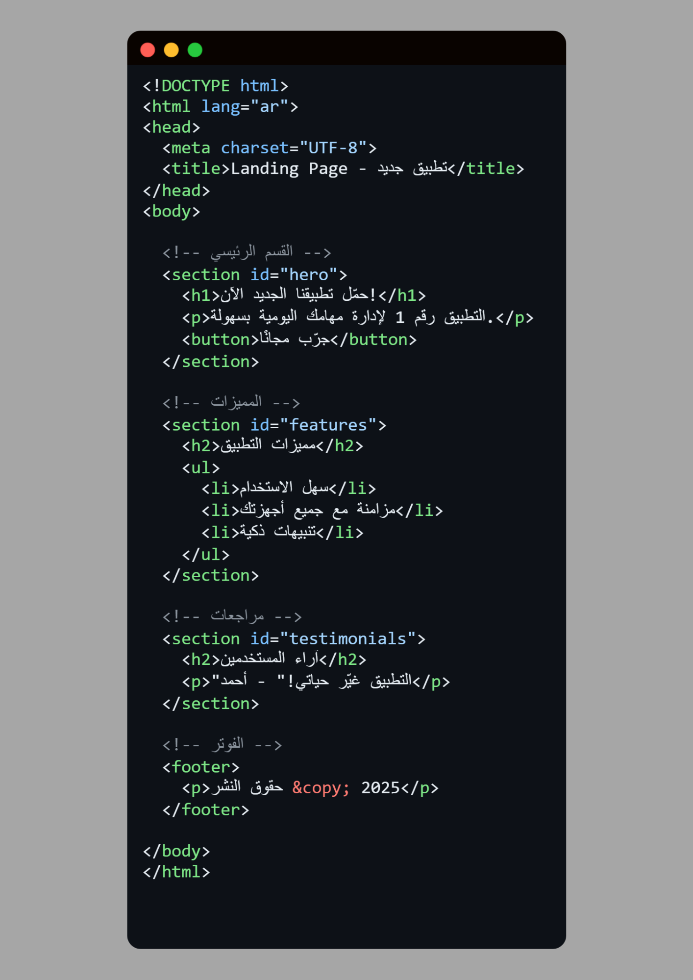 زر (CTA – Call To Action) مثل: “سجل الآن” أو “اشترِ الآن”.